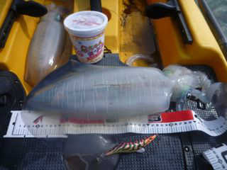 新艇の進水式でいきなり釣れて本人がびっくりです。当日ご一緒いただいた内房のカヤックアングラーの皆様に感謝いたします。今後もフィールドでお会いすることも多くなると思いますが、その際はよろしくお願いいたします。