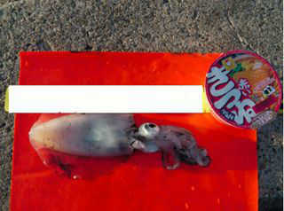 水深17〜20mぐらいでヒット。専用ロッドじゃなかったので、ほとんどティップラン釣法とは言い難いかも…。一年ちょい振りのアオリイカです(汗)