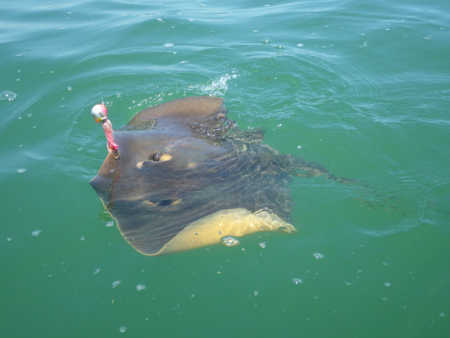 エイはさほど大きくはないのですが、鯛ラバで釣れたので珍しいかな?と。