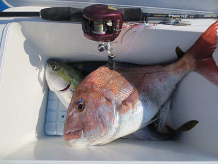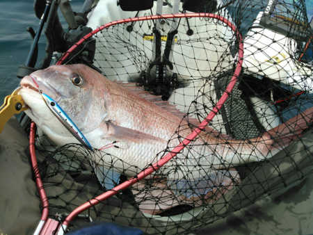 午後から2時間だけの釣行でしたが65cmの乗っ込みマダイとイナダ数本が自作インチクに釣れてくれました。