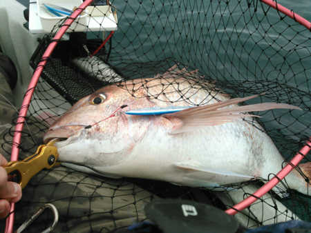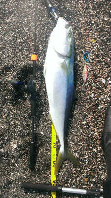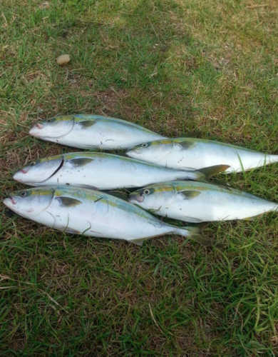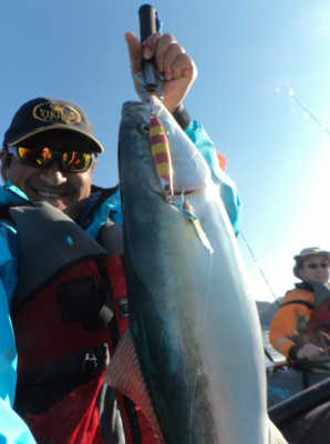 午後から2時間だけの釣行でしたが65cmの乗っ込みマダイとイナダ数本が自作インチクに釣れてくれました。