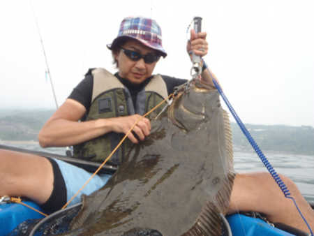 2014年に地元秋田県男鹿半島で自作インチクで釣った93cmのヒラメです。