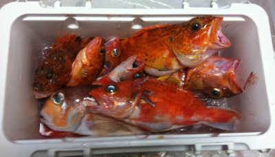 クーラーボックスから出てきたのは……食べて美味しい根魚の数々。